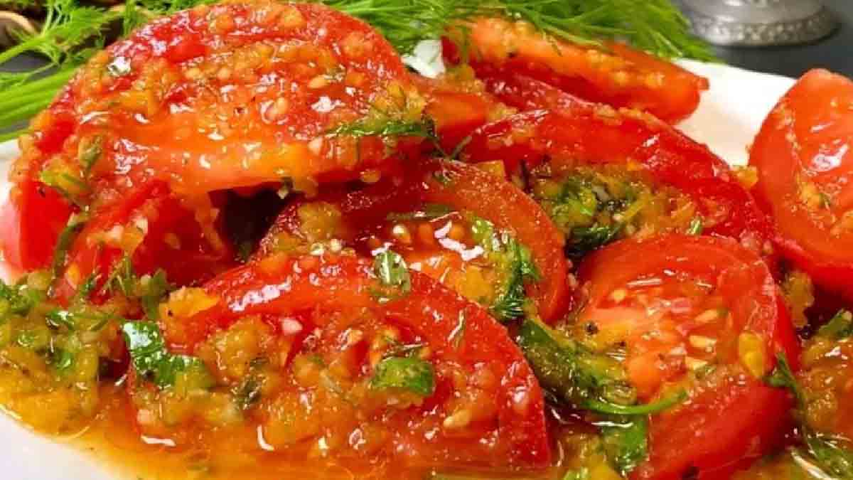 Servir los tomates marinados.