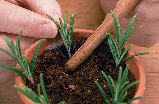 - Plantar las estacas: Inserte las estacas tratadas en las macetas preparadas, asegurándose de que estén lo suficientemente profundas para mantenerlas estables. Puede plantar varias estacas en el mismo recipiente, dejando espacio entre ellas.
