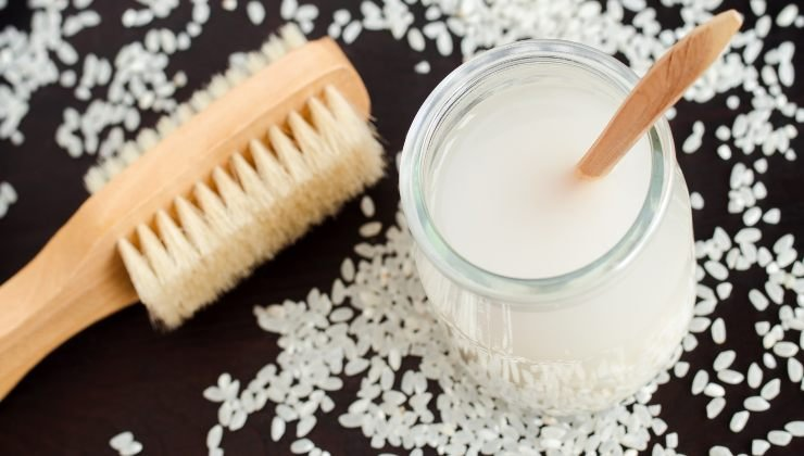 A esta harina de arroz se le agrega agua y se mezcla bien con una cuchara hasta que el agua adquiera un color blanco transparente, y solo en ese momento se puede utilizar.