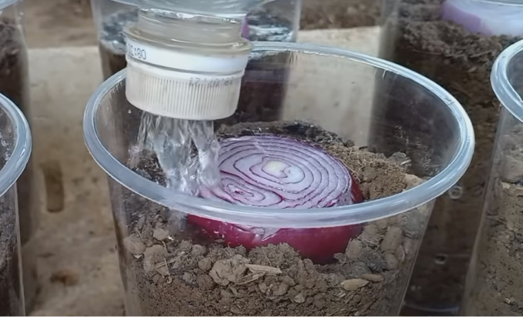 Cultive su propia cosecha de cebollas en vasos de plástico.