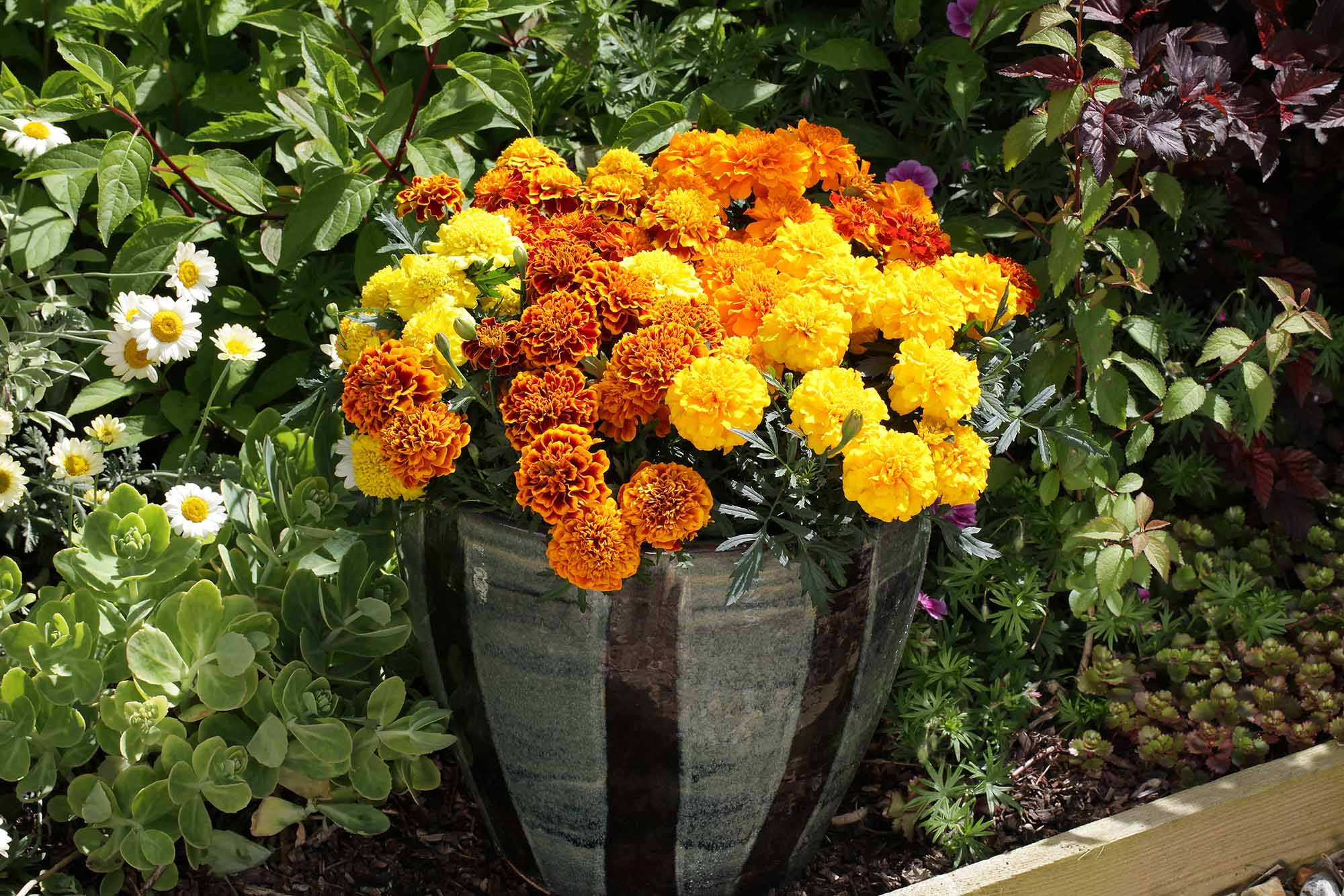 - Caléndulas (Tagetes) Insectos disuadidos: Mosquitos, pulgones, conejos El olor penetrante de las caléndulas aleja a los mosquitos y pulgones. También mantienen alejados a los conejos. Planta caléndulas a lo largo de los bordes del jardín para su protección.