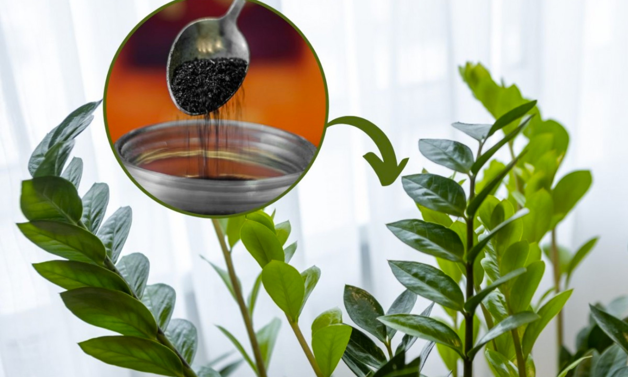 Puedes comprar carbón vegetal en tiendas de jardinería o en tiendas de comestibles. Tritúralo con un martillo y agrega una cucharada del polvo resultante a un litro de agua caliente. Mezcla bien y deja reposar durante la noche. Una vez filtrado, el preparado estará listo para su uso. Riega las plantas de maceta con este fertilizante una vez al mes y las ayudarás a sobrevivir al calor. Esto será especialmente beneficioso para el Zamioculcas, que rápidamente desarrollará muchas hojas nuevas. También puedes usar este fertilizante de carbón vegetal para otras plantas de maceta, como el espatifilo, el anturio, los helechos e incluso las orquídeas.
