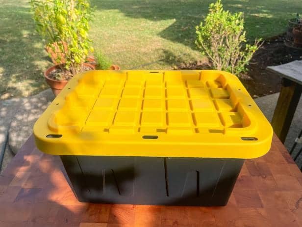 El primer paso en la construcción de un sistema hidropónico casero es elegir un recipiente de plástico opaco alrededor de 20 litros de capacidad con una tapa.