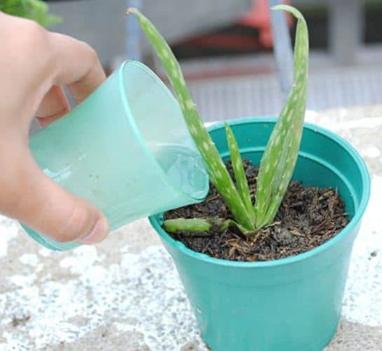 Sea cual sea el lugar donde crezca tu áloe vera, debes dejar que la tierra se seque casi por completo antes de volver a regar. Yo riego las mías a fondo y me aseguro de que toda el agua se escurra. No es bueno que quede agua en un platillo o bandeja, sobre todo si crece en el interior.