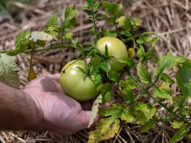 Al menos con una plaga como el gusano del tomate o la podredumbre de la flor, puedes darte cuenta de que algo va mal y actuar. Pero cuando lo estás haciendo todo bien y los tomates no hacen más que crecer, pero no enrojecen, es como para volverse loco. Y el calor seguro que no te ayuda a mantener la calma.